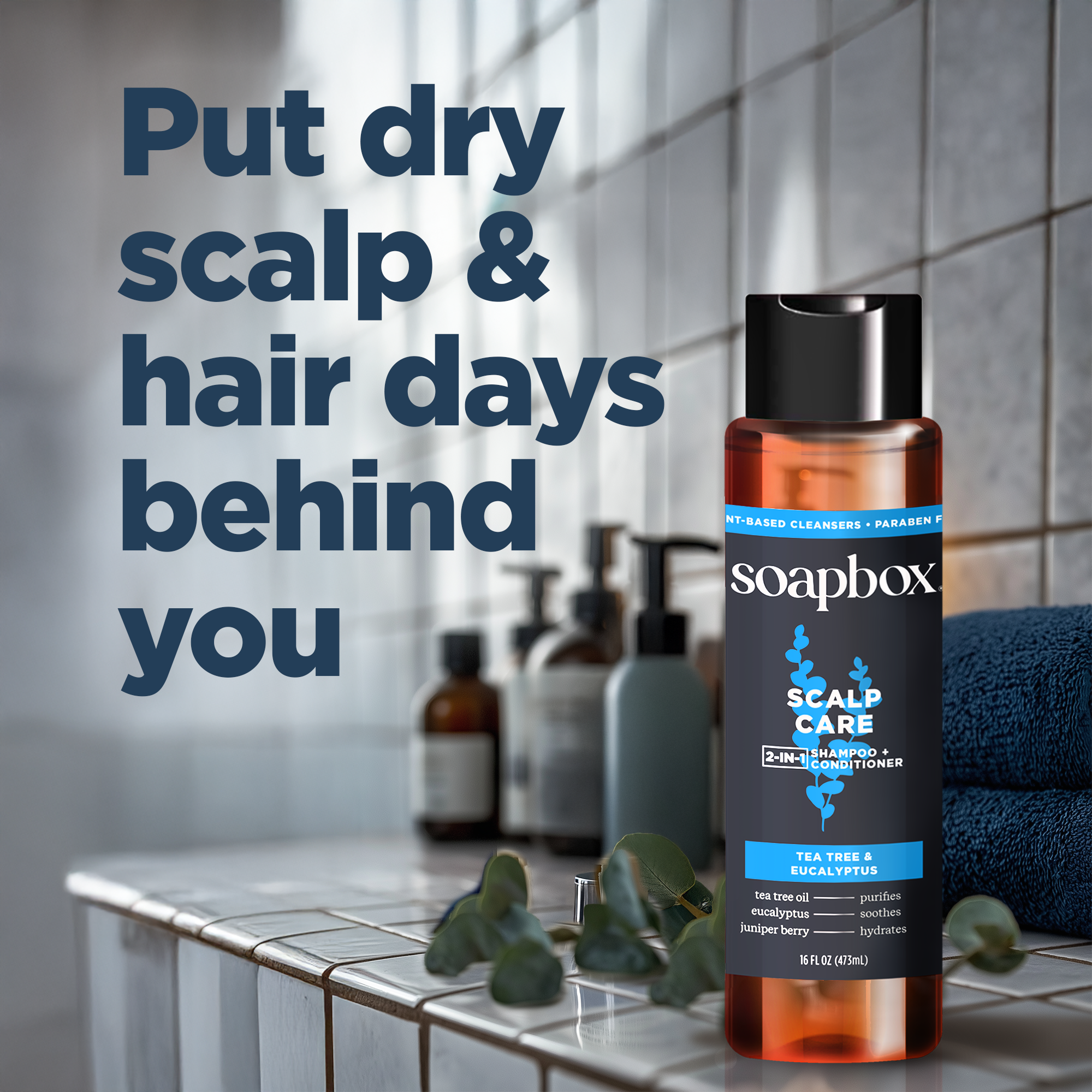 Chevron down icon Chevron down icon Zoom icon Click to expand Tap to zoom Men's Scalp Care 2-in-1 Shampoo and Conditioner Save Liquid error (snippets/product-badge line 32): Computation results in '-Infinity'% $9.99 | / $0.00 each 0.00 Purchase Options Selling Plans One time Purchase $9.99 $9.99 each Subscribe and Save $9.99 $9.99 each Frequency Deliver every month Deliver every month Deliver every 2 months Deliver every 3 months Deliver every 6 months Bundle Builder $9.99 $9.99 each Frequency Deliver every month Deliver every month Deliver every 2 months Deliver every 3 months Deliver every 6 months 1 2 3 4 5 6 7 8 9 10+ Quantity Chevron down icon Quantity Add to cart Spinner icon Notify me when back in stock Email address Email me when available Put dry scalp and hair days behind you with this soothing & hydrating wash. This 2-in-1 delivers rich suds for a balancing wash that nourishes and deeply cleanses with an invigorating scent of refreshing mint and eucalyptus. Blended with build-up busting tea tree, calming eucalyptus and hydrating juniper berry your hair and scalp will feel soothed. This color-safe hydrating 2-in-1 is formulated for all hair types and is silicone-free, paraben-free, gluten-free, and vegan. INGREDIENTS: Water (Aqua), Cocamidopropyl Betaine, Sodium C14-16 Olefin Sulfonate, Cocamidopropyl Hydroxysultaine, Decyl Glucoside, Polyquaternium 7, Melaleuca Alternifolia (Tea Tree) Leaf Oil, Eucalyptus Globulus (Eucalyptus) Leaf Oil, Juniperus Mexicana Wood (Juniper) Oil, Hydrolyzed Oat Protein, Hydrolyzed Wheat Protein*, Hydrolyzed Soy Protein*, Hydrolyzed Corn Protein*, Salix Nigra (Willow) Bark Extract, Amaranthus Caudatus Seed Extract, Glycerin, Glycol Distearate, Benzyl Alcohol, Sorbitol, Sodium Chloride, Hydroxyethylcellulose, Citric Acid, Dehydroacetic Acid, Linalyl Acetate, Fragrance (Parfum)*Bioidentical Vegan Keratin