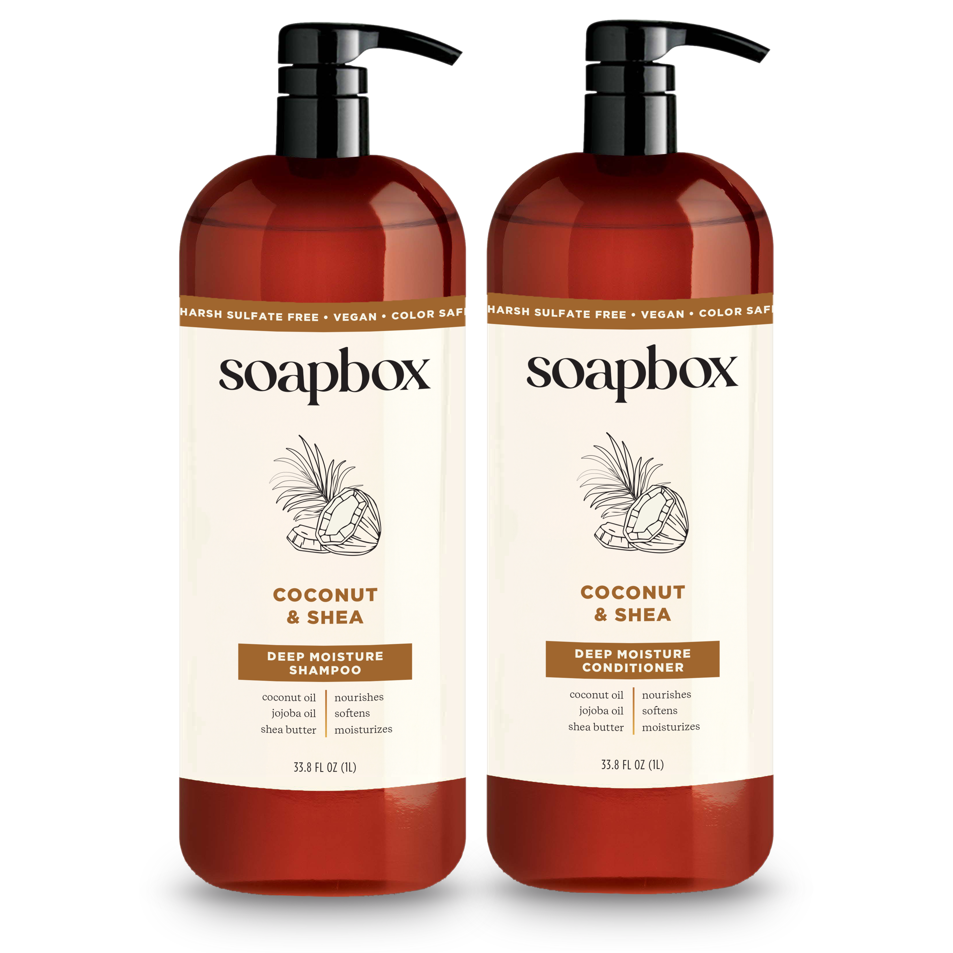 Chevron down icon Chevron down icon Zoom icon Click to expand Tap to zoom Coconut & Shea Deep Moisture Shampoo + Conditioner Set - 1 Liter Save 0% $39.99 | / $0.00 each 0.00 Purchase Options Selling Plans One time Purchase $39.99 $39.99 each Subscribe and Save $39.99 $39.99 each Frequency Deliver every month Deliver every month Deliver every 2 months Deliver every 3 months Deliver every 6 months 1 2 3 4 5 6 7 8 9 10+ Quantity Chevron down icon Quantity Add to cart Spinner icon Notify me when back in stock Email address Email me when available Take a deep dive into hydration with this coconut oil shampoo and conditioner that’ll leave your hair looking and feeling like a perfect 10. MOISTURIZING AND NOURISHING SHAMPOO contains coconut oil, which is rich in vitamins E, K and fatty acids, helping protect your strands by binding to your hair proteins. Hair thirsty for hydration? This shampoo is serving up moisture with every squeeze. HYDRATING CONDITIONER nourishes your hair, helps your strands retain moisture and also brings back its natural, healthy shine. Rich in fatty acids, coconut oil works double-time to help prevent protein loss in your hair with every use, leaving hair hydrated and shining all day long. SHAMPOO INGREDIENTS: Water (Aqua), Cocamidopropyl Betaine, Sodium C14-16 Olefin Sulfonate, Glycerin, Cocos Nucifera (Coconut) Oil, Butyrospermum Parkii (Shea) Butter, Aloe Barbadensis (Aloe Vera) Leaf Juice, Simmondsia Chinensis (Jojoba) Seed Oil, Ascorbic Acid (Vitamin C), Tocopheryl Acetate (Vitamin E), Folic Acid (Vitamin B9), Biotin (Vitamin B7), Panthenol (Vitamin B5), Sodium Chloride, Sodium Lauryl Sulfoacetate, Benzyl Alcohol, Disodium Laureth Sulfosuccinate, Cetrimonium Chloride, Citric Acid, Guar Hydroxypropyltrimonium Chloride, Dehydroacetic Acid, Polyquaternium-11, Polyquaternium-7, Fragrance (Parfum) CONDITIONER INGREDIENTS: Water (Aqua), Stearyl Alcohol, Cetyl Alcohol, Cetearyl Alcohol, Glycerin, Cocos Nucifera (Coconut) Oil, Butyrospermum Parkii (Shea) Butter, Ascorbic Acid (Vitamin C), Panthenol (Vitamin B5), Tocopheryl Acetate (Vitamin E), Folic Acid (Vitamin B9), Biotin (Vitamin B7), Limnanthes Alba (Meadowfoam) Seed Oil, Cetrimonium Chloride, Benzyl Alcohol, Behentrimonium Methosulfate, Stearalkonium Chloride, Guar Hydroxypropyltrimonium Chloride, Polyquaternium-11, Dehydroacetic Acid, Citric Acid, Fragrance (Parfum)